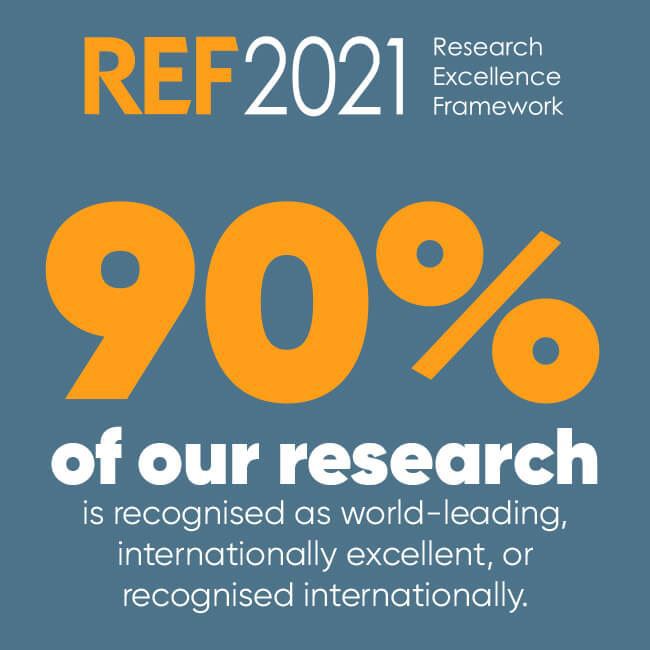 Ninety percent of our research was world-leading, internationally excellent or recognised internationally.