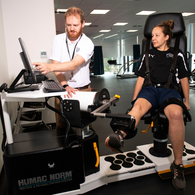 This isokinetic test can assess strength across a range of joints and muscle groups. It is the gold standard at measuring strength following an injury and can highlight weaknesses between muscles or limbs. The data report produced can inform rehabilitation programmes.